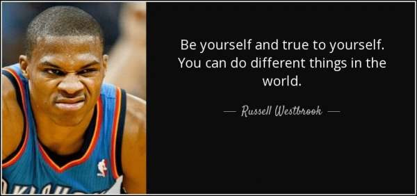 但今天我并不是要讨论威少和詹姆斯交恶的新闻,而是对文中第一件事中的一个词深入分析,那就是“be yourself(做自己)。”这是威少在2016-17赛季夺取MVP后发表的感言,而自打他加入湖人后,詹姆斯要威少做自己,戴维斯要威少做自己,一直到最近加盟国王,记者又问威少:“主教练克里斯蒂对你有什么要求?”威少回答说:“他就让我做自己”,说完自己都笑了,毫不夸张的说,“做自己”已成为威少身上的重要的梗,那大家心目中的威少“最强自己”又是什么水平呢?