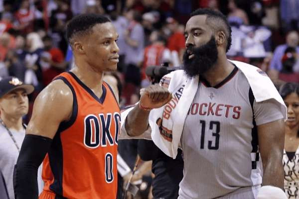 因为长时间支配球,自然而然失误比例同样高,该赛季威少场均失误5.4次在全联盟排名第2,低于哈登的5.7次,威少总计失误438次,也低于哈登的464次,在这个负面数据方面他依然赢了哈登。
