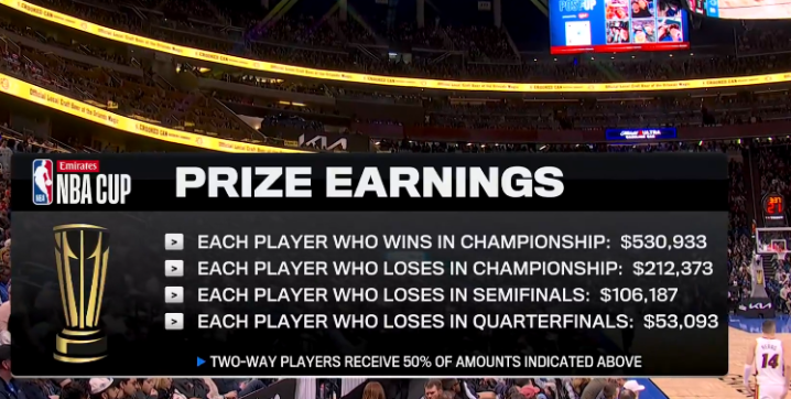 魔术淘汰热火晋级下一轮,因此他们全队每人至少可以获得106187美元,他们将在下一轮大战尼克斯和猛龙之间胜者,争夺晋级决赛冲击杯赛冠军的名额;根据奖金分布情况,夺冠球队,每人将获得530933美元,亚军则是每人获得212373美元。