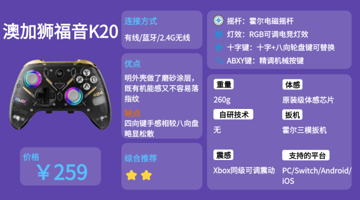 排名四:澳 加狮福 音K20游戏手柄