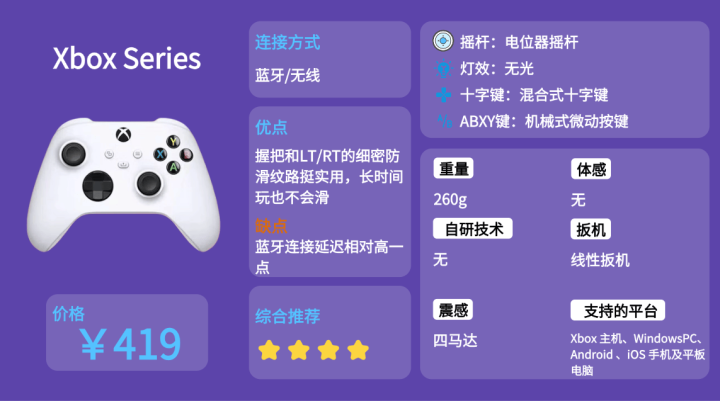 ➤ 核心部件看品质:优先选搭载霍尔摇杆、的手柄,能够杜绝物理磨损漂移,避免频繁换手柄的麻烦。