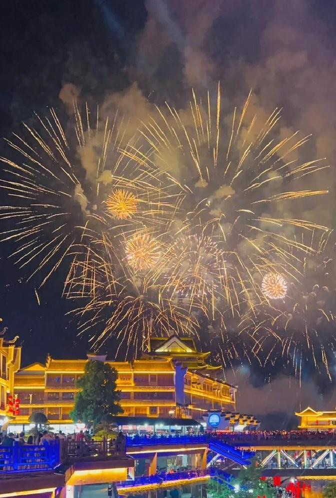 束烟花在头顶炸开,接着一串一串,把夜空撑成了彩色的大伞。