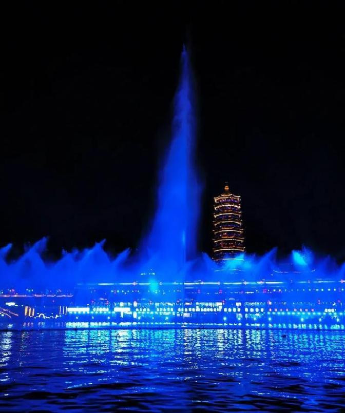 水柱十几米,灯光一照,色彩就在空中翻滚。
