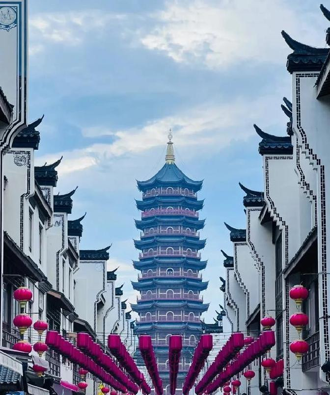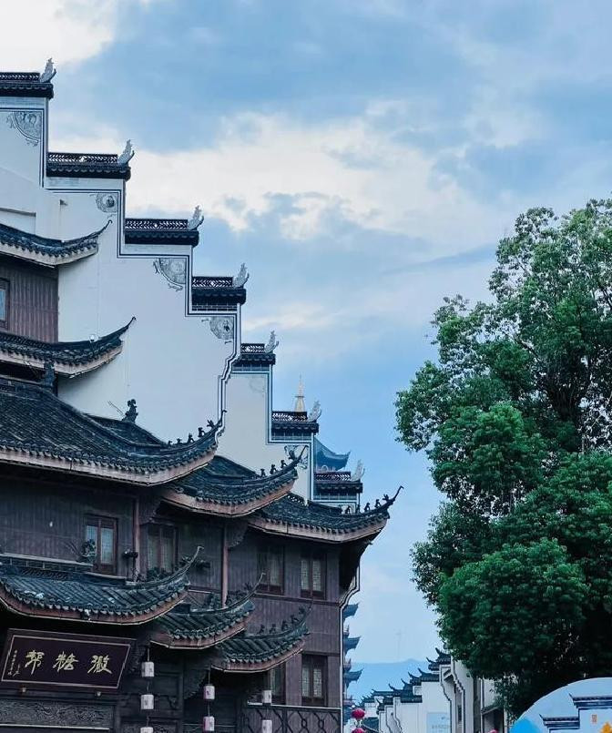 两边都是白墙黑瓦,屋檐高高翘起。