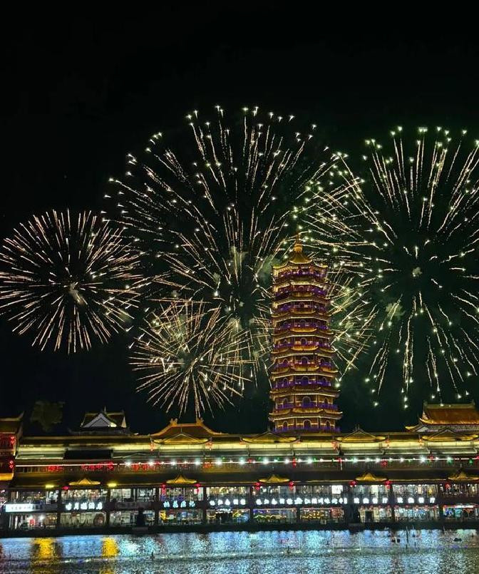 夜里回程,车上大家还在回味那碗面和那场烟花。